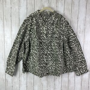 Jessica London Denim Jacket Women’s Sz 32W Olive Green Cream Print - NEW