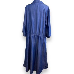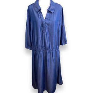 Jessica London Dress Womens 22 Blue Midi Chambray Pockets Elastic Roll Tab