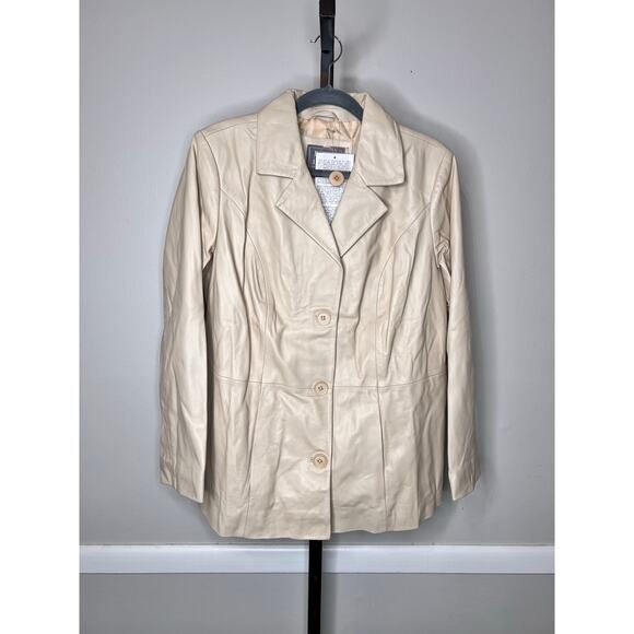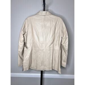 Jessica London Genuine Leather Blazer Jacket Cream Beige Size 12W NWT