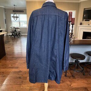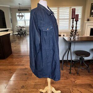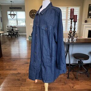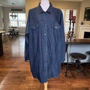 Jessica London Long Denim Jacket Plus Size 32W Chest Pockets Heavy Thick Jean