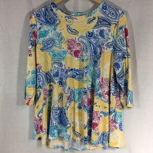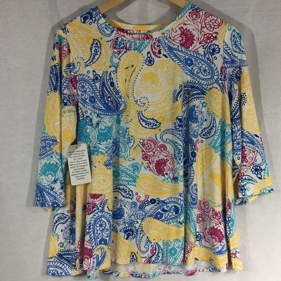 NWT 3/4 length sleeves tee. Many colors with paisley type pattern. Size 12.