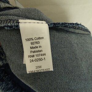 Jessica London Open Front Denim Jacket Fringe Edges Women Plus Size 20W Long Slv