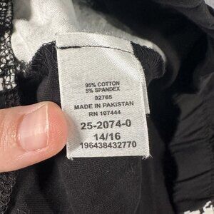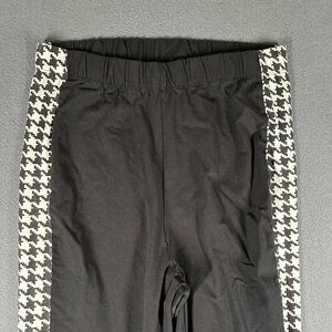 Features: Classic black color with black and white houndstooth patterned side panels, elastic waistband for easy pull-on style, tapered leg fit