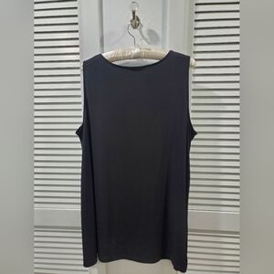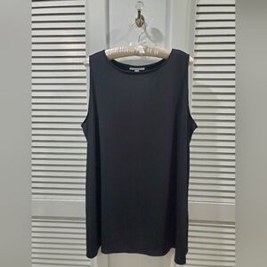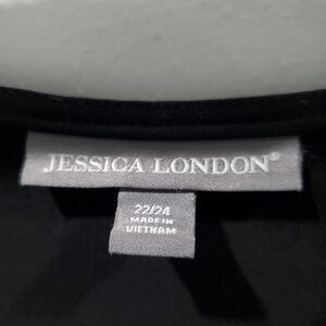 Jessica London EUC Black travel knit sleeveless tank tunic. Slit at hem on each side for ease of movement. Size 22/24. Super stretchy and comfortable. 28.5" from pit to pit. slit at bottom hem is 7.25". Bottom hem is 34.5" across. 33" from top to bottom in back. I also have the same style in a black and white print size 18/20 listed. Please see photos for more information.