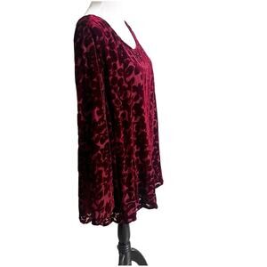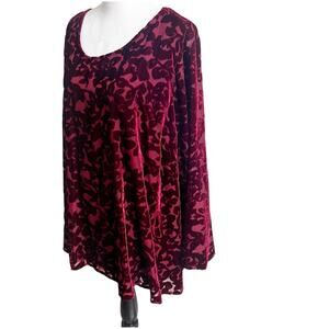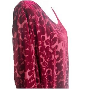 Jessica London Plus Size 30/32 Velvet Burnout Blouse Floral Dark Red Holiday