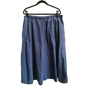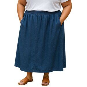 Jessica London Plus Size Skirt 28W Elastic Waist Blue Long Length