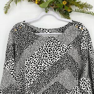 Jessica London Size 30-32 Boat Neck Basic Animal Print Geometric Artsy Shirt
