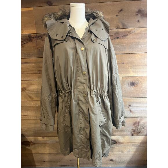 Jessica London Sporty Anorak Parka Jacket Faux Fur Trim Womans Size 24