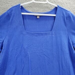 Jessica London Square Neck Shirt Top With Pockets Plus Size 22/24 Blue