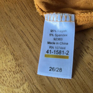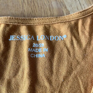Jessica London Swing Tee, size 26-28. This hi/lo long sleeved tee has side panels that allow for a comfortable and flattering fit. This tee is a beautiful mustard color. There are no holes, rips and stains.