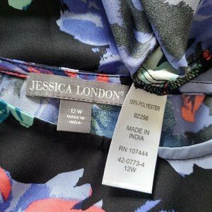 Jessica London Top Size 12W Tunic Side Slits Floral Sleeveless Blue NWT