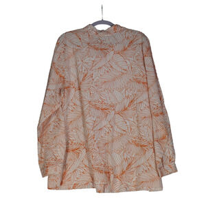 Jessica London Top Women 18W Orange Linen Blend Blouse Roll Sleeve Lightweight