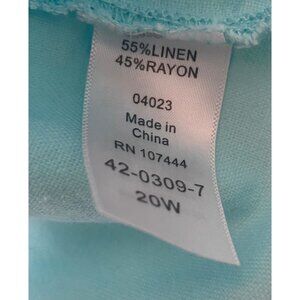 Jessica London Top Womens 20W Blue Embroidered Linen Blend Tunic Plus Size Coast