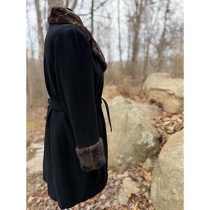 Jessica London Vintage Wool Blend Coat Faux Fur Collar Cuffs Belted Black Medium