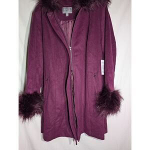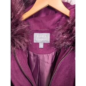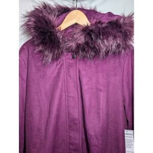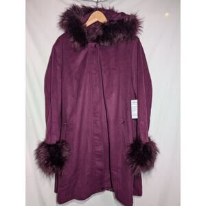 Jessica London Wmns Plus Size Wool Blend Faux Fur Trim Hooded Coat 24W Purple. This item is equipped with two way zipper. This coat is new with tags.