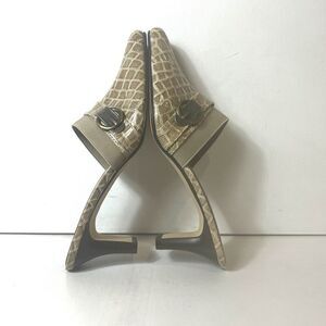 Jessica London Womens Sz 8M Mule Heels Slip On Glossy Beige Studded Faux Leather