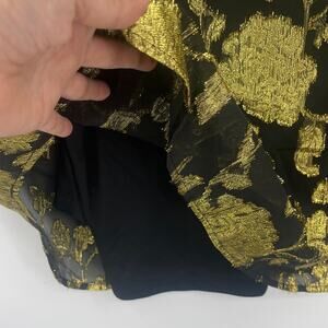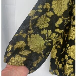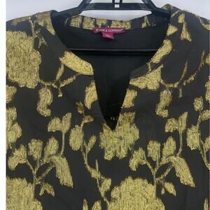 Jessica London Black Gold Metallic Floral Blouse 3/4 Sleeve Top Glam Plus Mob WIfe
