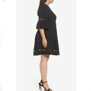 Jessica London black bell sleeve lace lined dress size 16 NWOT