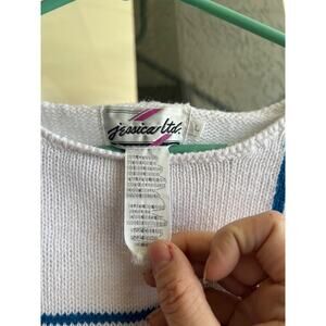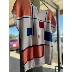 Vintage 1980's Jessica Ltd. short sleeve colorblock sweater. There are no major stains, holes, or tears. The tag says size large but it fits smaller. Please check measurements before purchasing!