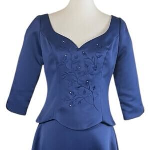 Jessica McClintock 2 Piece Evening Gown Blue Satin Embroidery Women’s Size 8