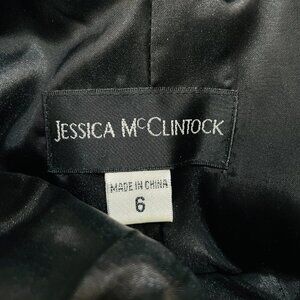 Jessica McClintock 90''s Size 6 Black Lace Over Beige Bow Pleated A-Line Dress