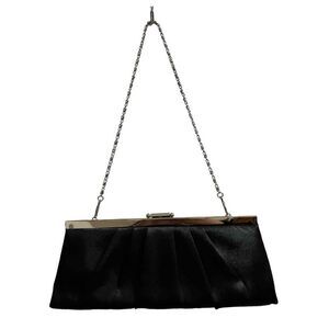 Jessica McClintock Black Kiss Lock Pleated Satin Convertible Clutch