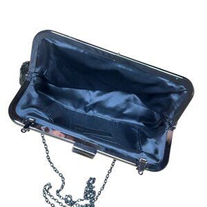 Jessica McClintock Black Metallic Mesh Clutch Small Chain Crossbody Formal