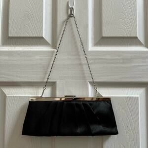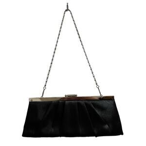 Jessica McClintock Black Pleated Satin Convertible Clutch Shoulder Bag