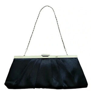 Jessica McClintock Black Satin Fabric Evening Clutch Handbag Purse Chain