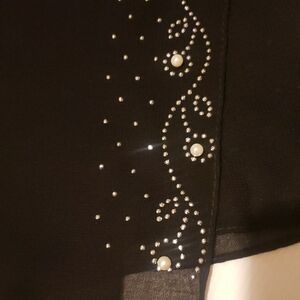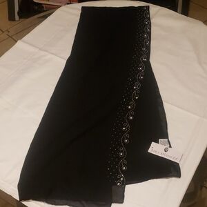 Chic black scarf by Jessica McClintock. Adorned with shimmering accents along the border.