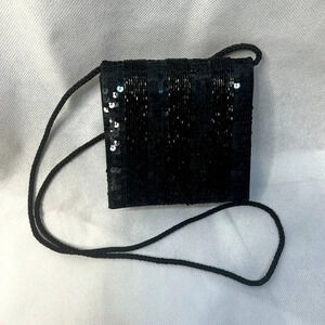 Jessica McClintock Black Sequin Small Evening Bag Crossbody