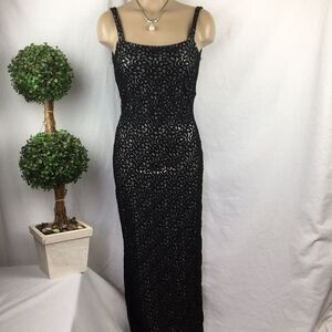 Jessica McClintock Black & Silver Vintage Long Maxi Formal Dress 5-6