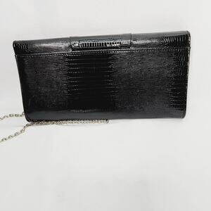 Jessica McClintock Black Small Flap Over Chain Strap Purse/Clutch