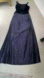 Elegant prom dress with a black velvet bodice. Flowing purple satin skirt. Perfect for special occasions.