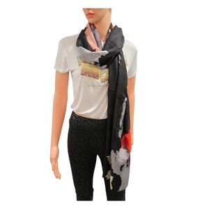 This elegant scarf from Jessica McClintock features a striking black and red color palette, perfect for adding a touch of sophistication to any ensemble. Crafted from a lightweight material, it drapes beautifully, making it an ideal accessory for both casual and formal occasions. The versatile design allows it to be styled in various ways, enhancing your wardrobe with its timeless appeal.