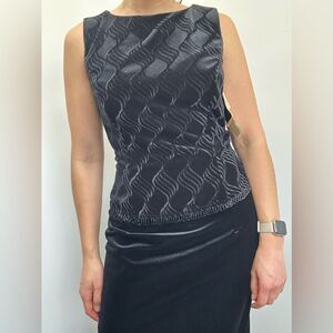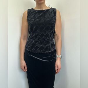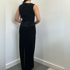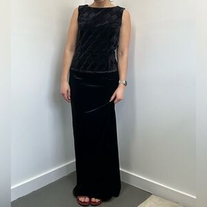 Jessica McClintock Black Velvet Crew Neck Evening Maxi Dress Beaded Layered M