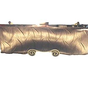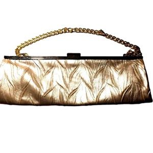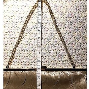 Item: Jessica McClintock Clutch Bag Gold Chain Clasp Rectangle Inside Pocket Zipper