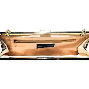 Jessica McClintock Clutch Bag Gold Chain Clasp Rectangle Inside Pocket Zipper