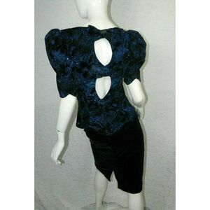 Jessica MClintock Dress Vintage Black Velvet Blue Sparkles Open Back Bows Puffy Sleeves Size 8