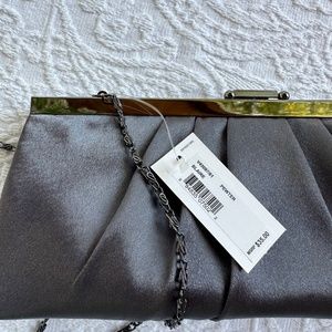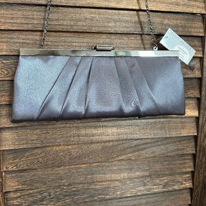 Jessica McClintock Evening Bag Pewter Convertible Clutch Faux Leather NWT