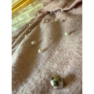 Jessica McClintock Faux Pearl-Embellished Pink Scarf With Fringe