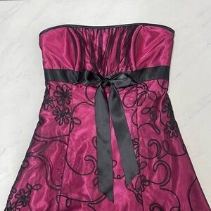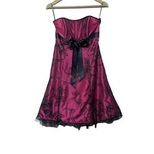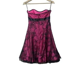 Jessica McClintock For Gunne Sax Y2K Hot Pink Black Strapless Mini Dress Size 7