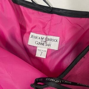 Jessica McClintock For Gunne Sax Hot Pink Black Strapless Mini Dress Size 7!