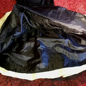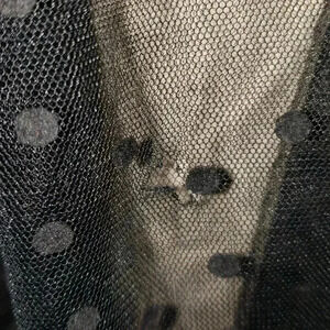 sheer tulle overlay, has velvet circles missing on front and a small tear- see picture