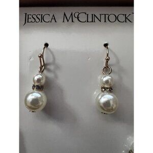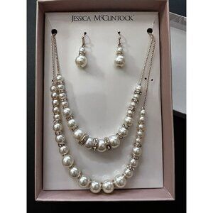 Jessica McClintock Gold Chain w Pearls & Faux Diamond Spacers Necklace Set