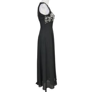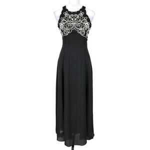 Jessica McClintock Gunne Sax Gown Womens 5 6 Dress Black White Applique Vintage