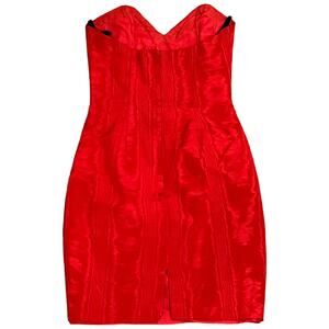 Jessica McClintock Gunne Sax Red Strapless Mini Dress with Gold Lace - Size 3/4
