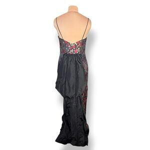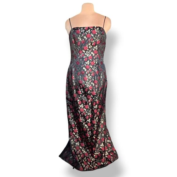 Jessica McClintock Gunne Sax Rose Brocade Gown Black Red Floral Train Size 13 14