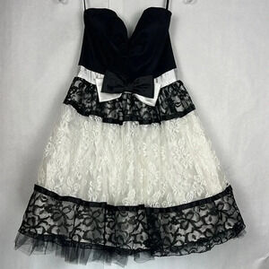 Jessica McClintock Gunne Sax Strapless Lace Tulle Satin Bow Mini Dress Sz 7