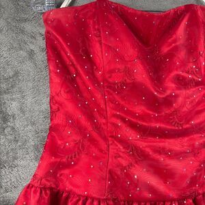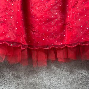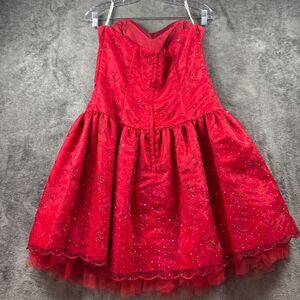 Pre-loved Embroidered Prom Strapless Club Rave Formal Vampire Grunge Some slight deodorant marks Jessica McClintock Gunne Sax Vintage Dress Gown Red Sequins Tulle 80s 90s 11/12